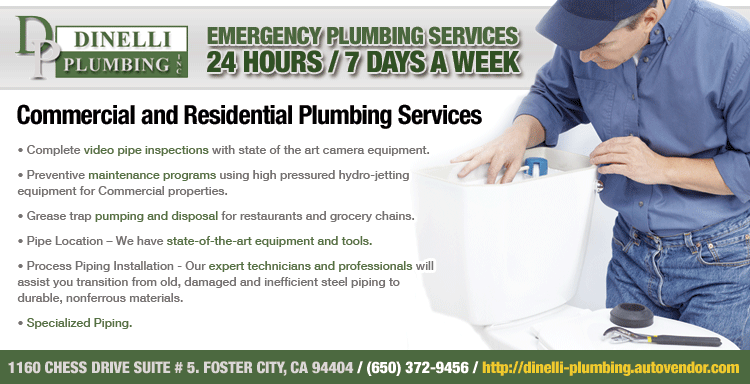 Dinelli Plumbing Inc. offers 24/7 emergency plumbing service for residential and commercial areas in foster City, San Mateo, San Jose, Alameda and the surrounding areas in the Bay Area.